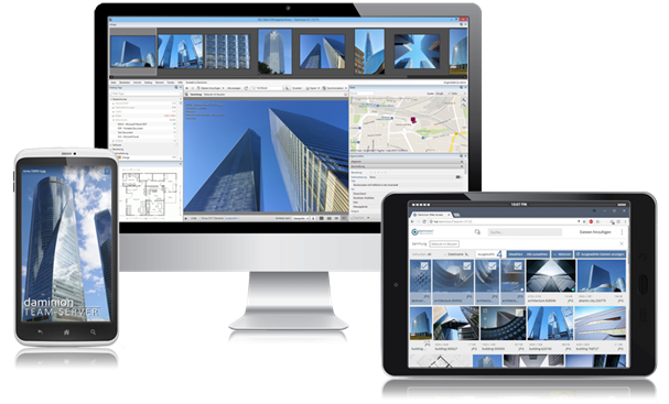 Digital Asset Management (DAM) von Daminion. Erhältlich sowohl als lokale Client/Server Lösung als auch in der Cloud Variante.
