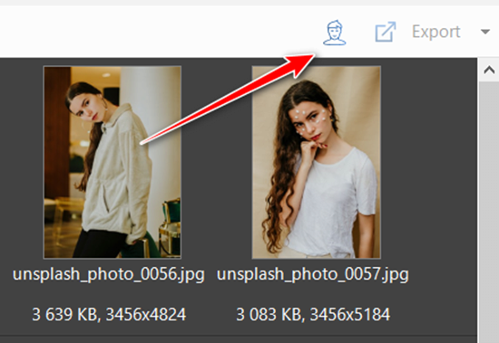 Um mit dem Taggen von Personen zu beginnen, die auf den Bildern erkannt wurden, öffnen Sie den Daminion-Desktop-Client und klicken Sie auf das Gesicht-Symbol in der oberen rechten Ecke der Benutzeroberfläche, wie im folgenden Screenshot gezeigt: