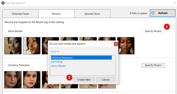 Abhängig von der Anzahl der Dateien pro Katalog und der Anzahl der Kataloge mit aktiver Gesichtserkennung kann dieser Vorgang zeitaufwändig sein und zu einer hohen CPU-Auslastung führen.